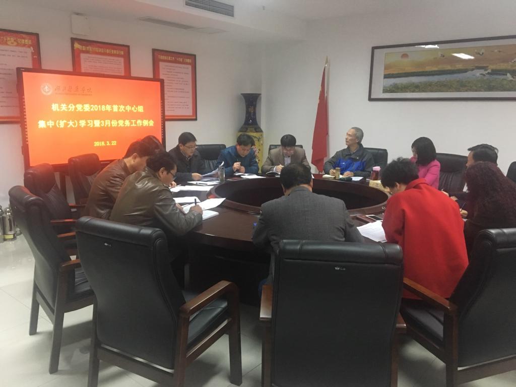 本网讯(通讯员 祝丰胜)3月22日上午,机关分党委召开2018年首次中心组集中扩大学习暨党建工作会议。分党委委员、机关各支部书记和机关分党委党建组织员廖广照同志参加会议,会议由分党委书记张海蛟主持。
