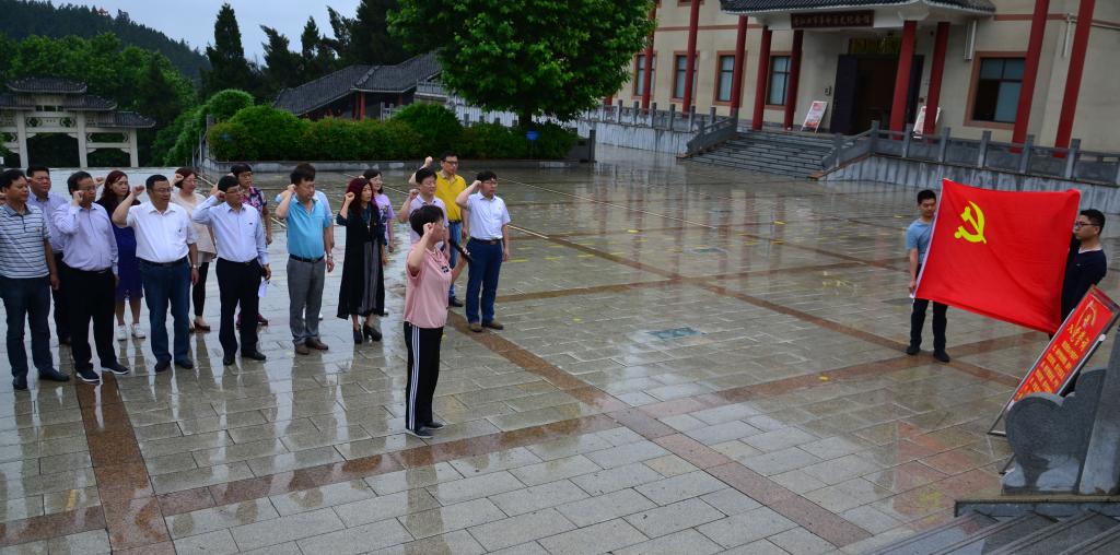 丹江口市烈士陵园于2017年8月被省政府批准为省级烈士纪念设施。上午10时许,青山含翠,天地同悲。在机关分党委书记张海蛟的主持下,全体人员在纪念碑前列队肃立,由分党委组织委员夏永红带领重温了入党誓词,向烈士纪念碑敬献了花篮而后瞻仰了烈士纪念碑、参观了革命纪念馆,聆听了从红军革命时期到抗日战争时期在均州这片沃土牺牲的革命先烈感人事迹的介绍。